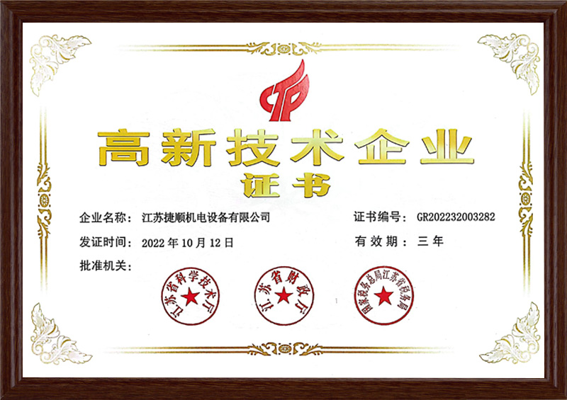 機電設(shè)備高新技術(shù)企業(yè)證書