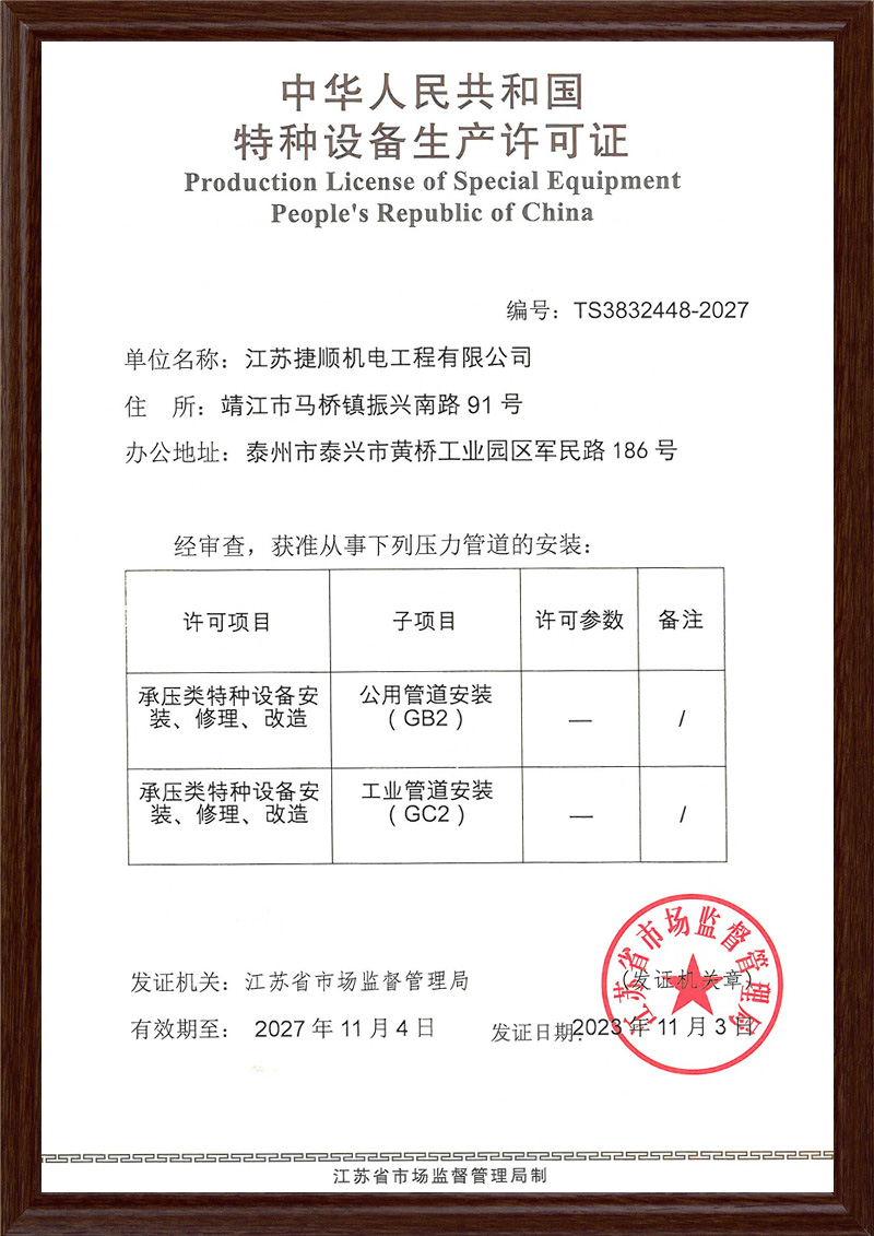 壓力管道許可證