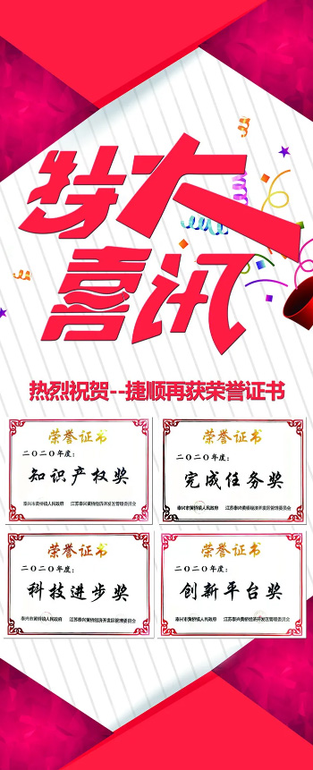 熱烈祝賀--捷順再獲榮譽(yù)證書